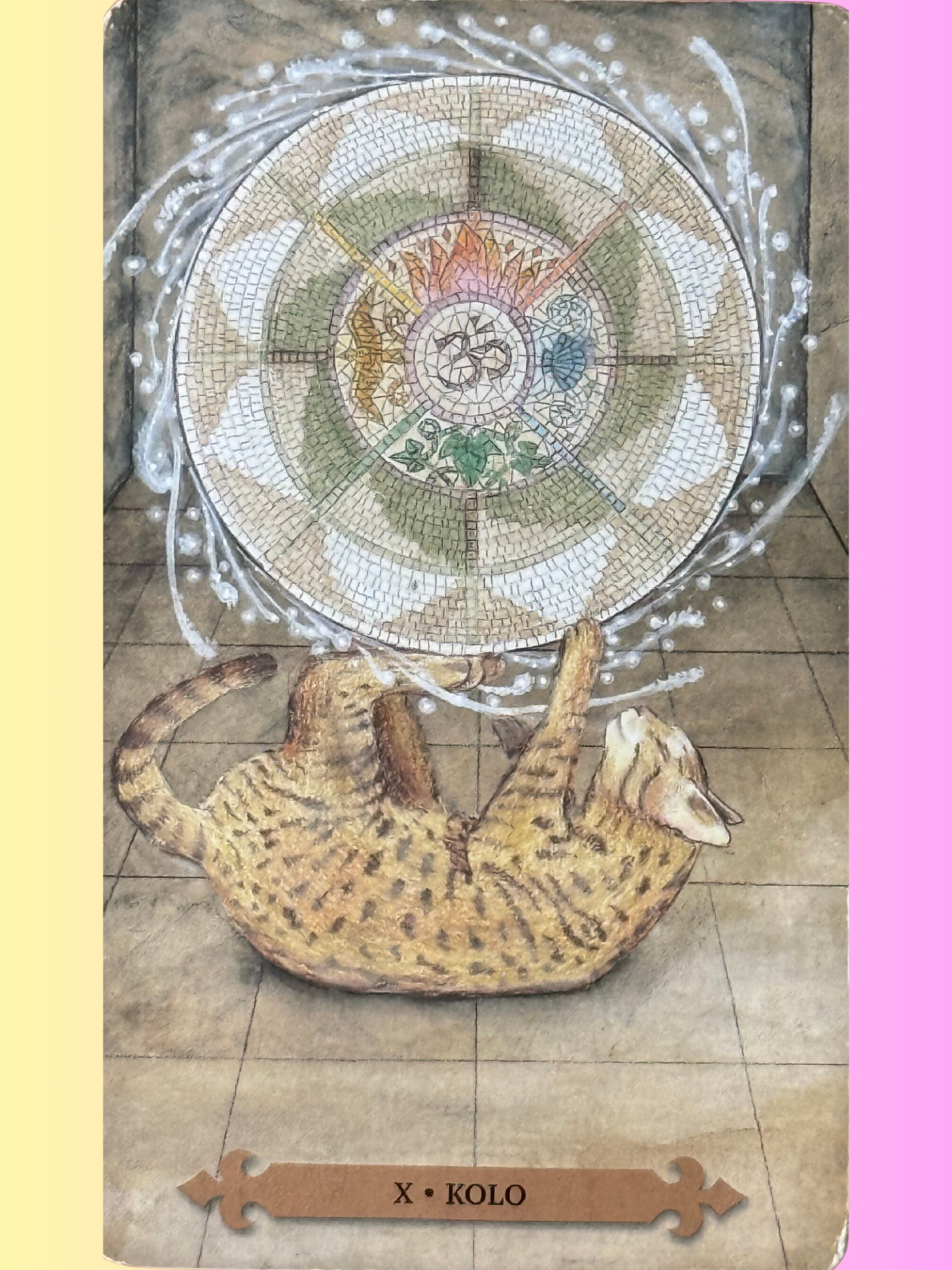 Tato karta přichází, když se kolo života znovu otáčí a ty se ocitáš v pohybu, který nemůžeš zastavit.